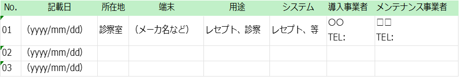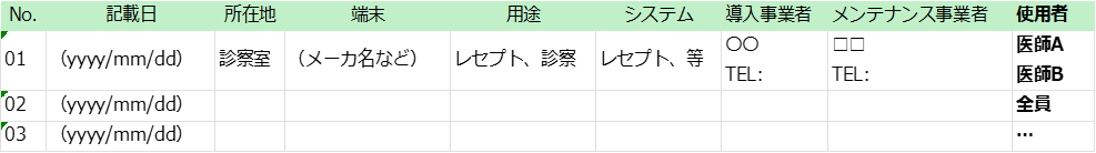 上記1. と2. に関しては定期的に情報の更新を行うことも重要です。端末の追加や入れ替え、スタッフの異動等に伴う使用者の変更などに合わせて見直しを行い、その時々の施設や医療情報端末の状況を正確に反映した記録が必要です。